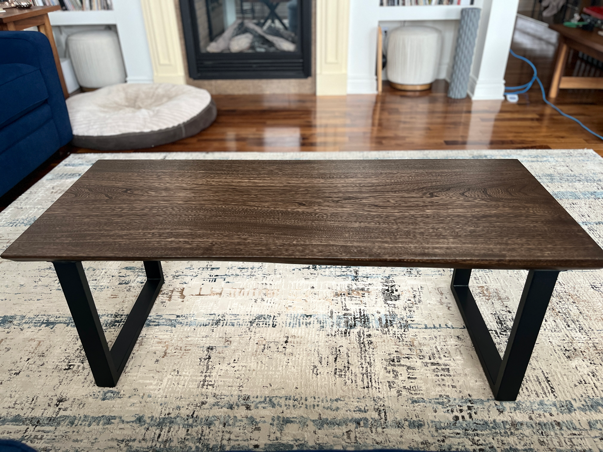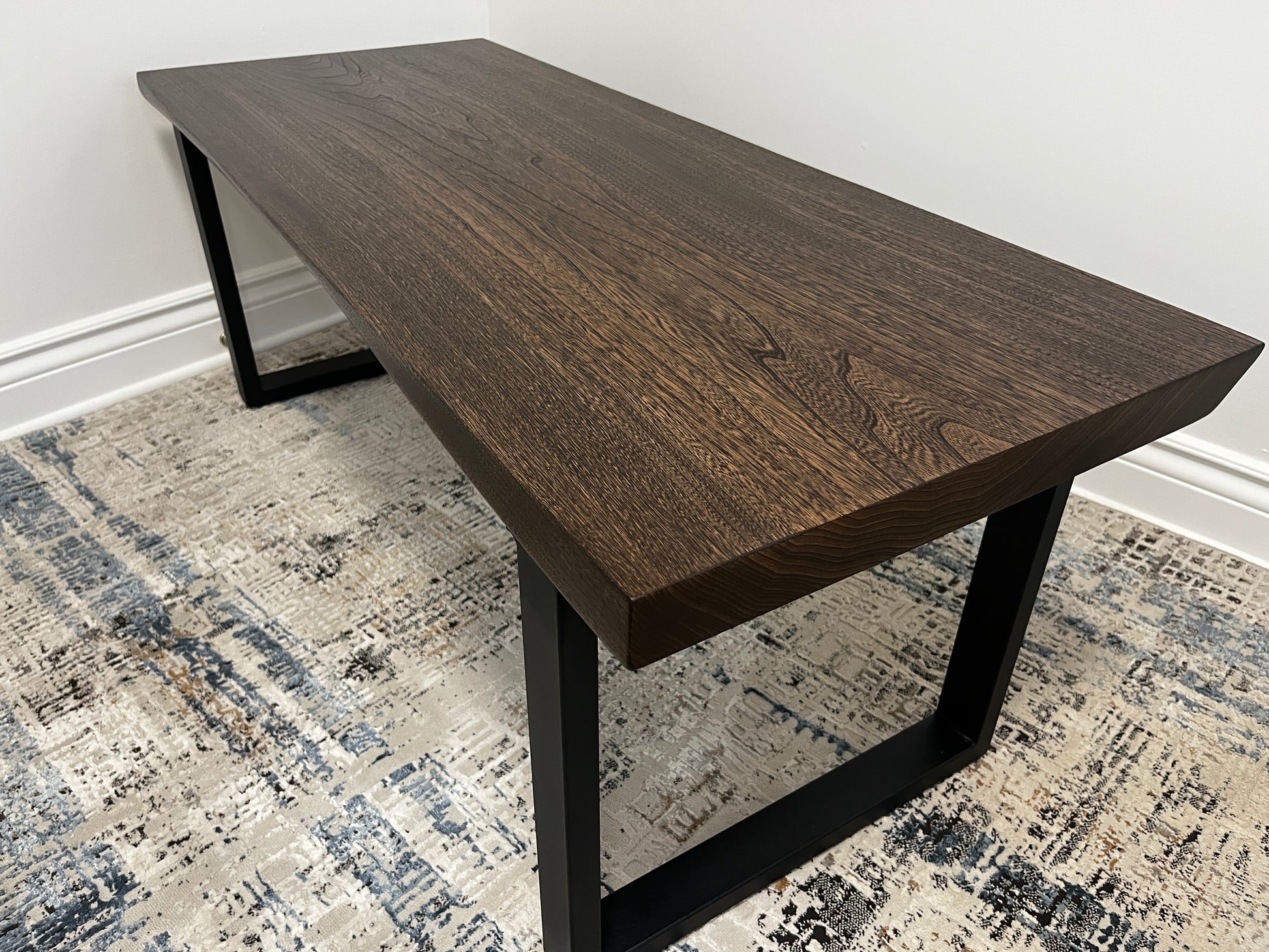 Make a bold statement in your living room! This handcrafted elm coffee table is finished in a rich Dark Roast stain with a ceramic coating, for maximum durability and easy care. The deep tones accentuate the natural elm grain, creating a dramatic center piece that’s as functional as it is stylish. Perfect for everyday living or elevating your space when entertaining.