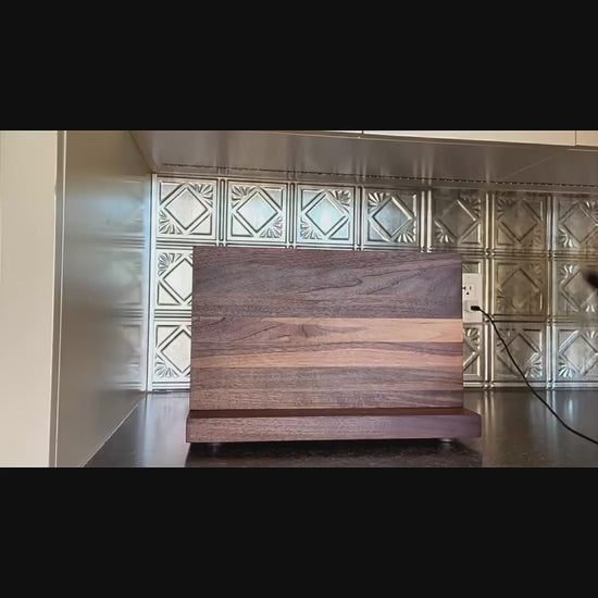 Upgrade your kitchen with a handcrafted magnetic knife block made from solid walnut. Each piece is built after you place your order, giving you a one-of-a-kind block custom to your desired size and wood selection that shows off both your knives and the natural beauty of real hardwood.