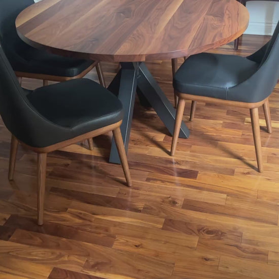 Transform your dining space with the timeless elegance of this 49-inch solid walnut dining table. Handcrafted from premium walnut hardwood, it showcases the wood’s rich grain, warm tones, and smooth ceramic coated spill protective finish.